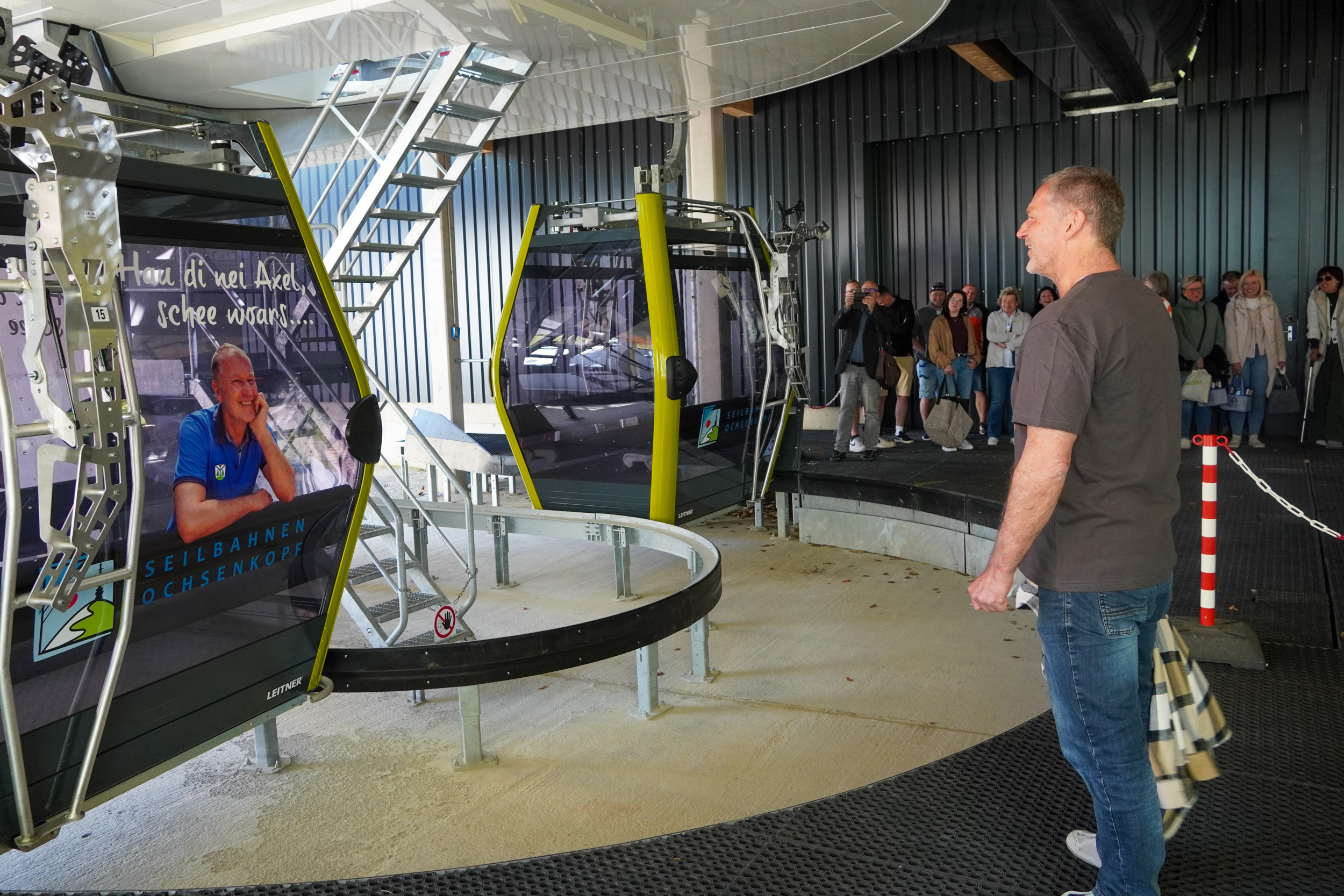 Sein Team hatte heimlich eine Seilbahnkabine am Ochsenkopf gestaltet, als besonderes Überraschung und Abschiedsgeschenk zum Ende seiner Amtszeit.