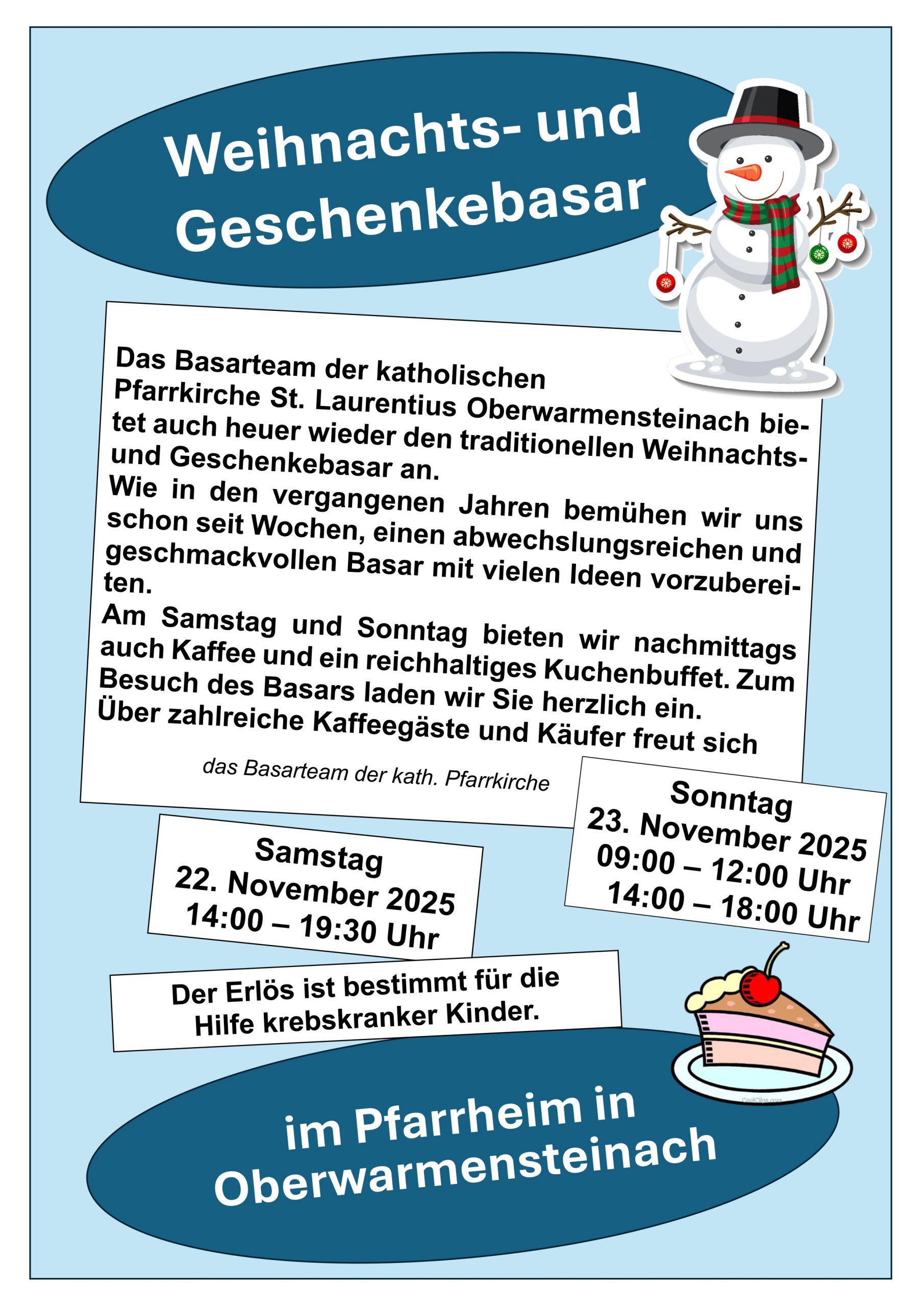 Weihnachts- und Geschenkbasar im Pfarrheim in Oberwarmensteinach